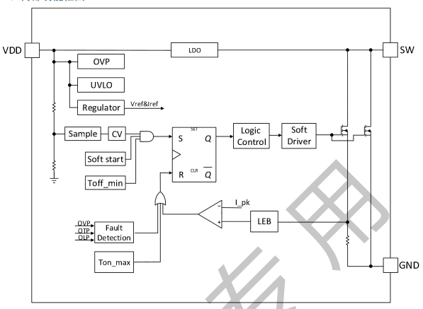 功率MOS漏極電壓:650V,這是芯片能夠承受的最大漏極電壓,適用于高電壓輸入場(chǎng)景。