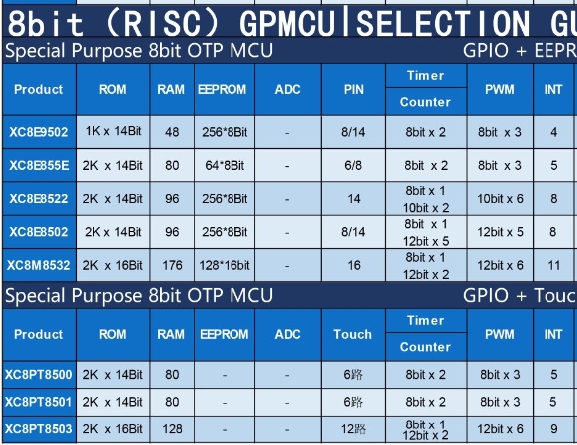 國(guó)產(chǎn)單片機(jī)MCU的種類繁多,涵蓋了從基礎(chǔ)的GPIO操作到復(fù)雜的ADC、LCD顯示和電子煙控制等多種功能。這些單片機(jī)不僅在技術(shù)上不斷進(jìn)步,而且在性能和可靠性上也達(dá)到了國(guó)際先進(jìn)水平。以下是一些主要的國(guó)產(chǎn)8位單片機(jī)MCU類型:
