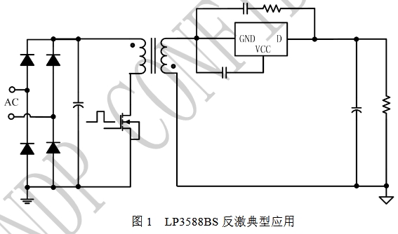 LP3588BSF適用于多種開關(guān)電源設計,以下是其在充電器中的典型應用電路: