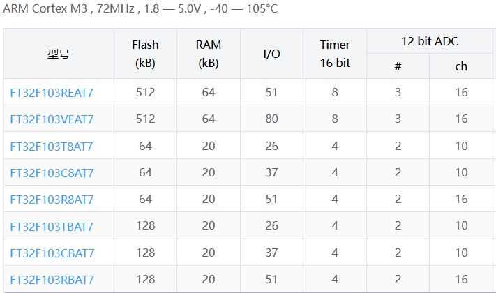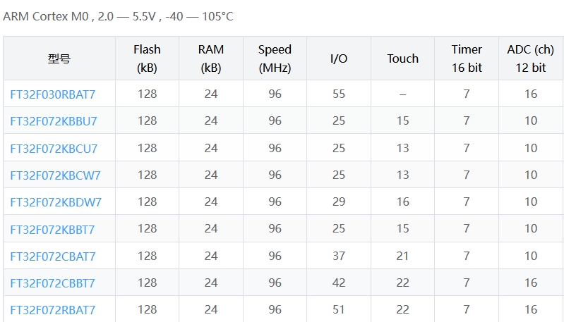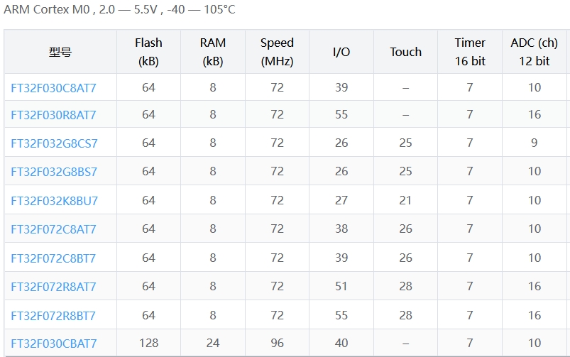 (本文按 Flash/RAM 從小到大排列)