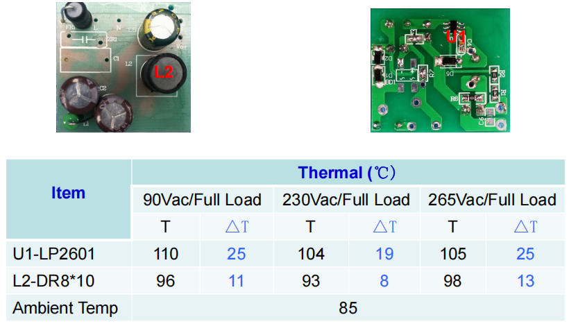 U1 表面 92 ℃,L1 85 ℃,F(xiàn)R1 78 ℃,全部 < 120 ℃ 降額限值