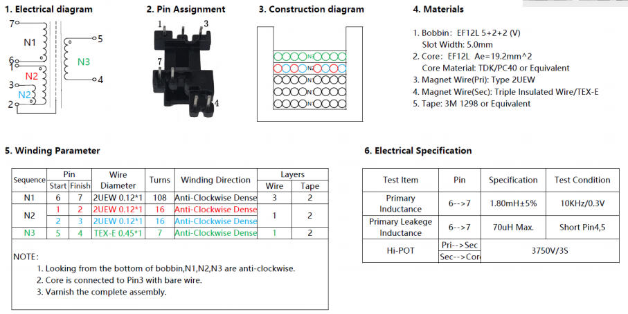 漏感:短接N3,6-7腳讀<70 μH;