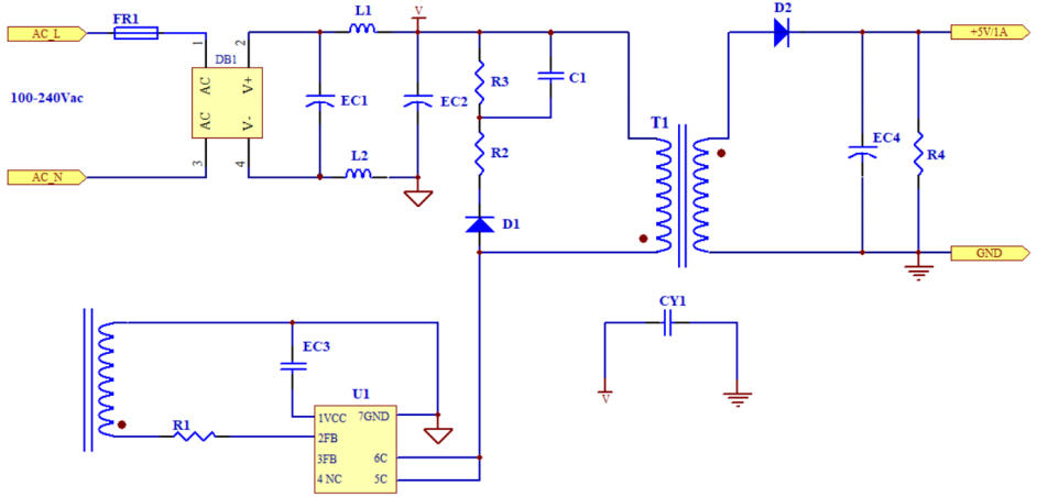 PCB高壓環(huán)路面積<0.8 cm2,差模尖峰<-10 dB。