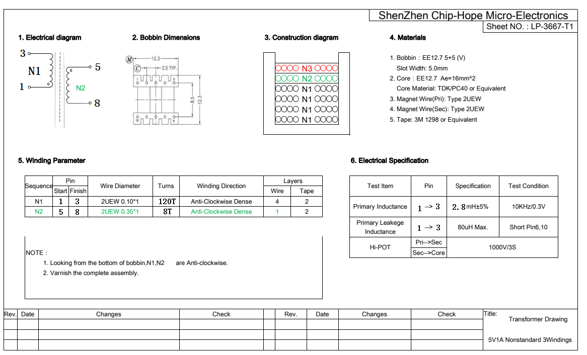 變壓器資料:EE12.7雙繞組,已量產無需調試