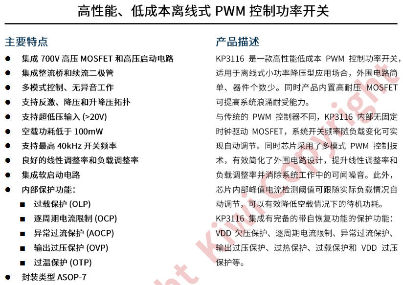 KP3116WPA 把“高壓 MOS + 高壓?jiǎn)?dòng) + 多模式 PWM”一口氣塞進(jìn) SOP-7,外圍僅 8 顆料,空載 <100 mW,系統(tǒng)成本 <0.45 元,PCB 1 cm2 搞定??赐赀@篇,你會(huì)明白什么叫“一粒米”電源。
