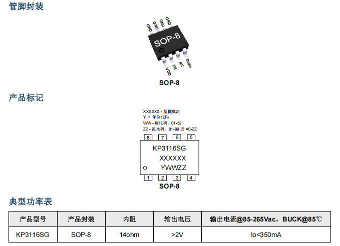 KP3116SGA 的出現(xiàn),讓這三道門檻變成了一條“直線”——因為它把 700 V 功率 MOSFET、高壓啟動、多模式 PWM 控制器全部塞進一顆 SOP-8,還順手把“固定時鐘”拿掉了。