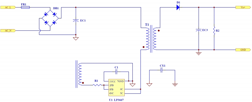 LP3667B 5V1A 充電器采用非標(biāo)三繞組設(shè)計(jì),旨在實(shí)現(xiàn)高效、穩(wěn)定的充電性能。該設(shè)計(jì)適用于多種電子設(shè)備,能夠在 115V-265V 交流輸入電壓范圍內(nèi)工作,滿足不同地區(qū)的電網(wǎng)要求。其輸出電壓在 4.75V 至 5.4V 之間可調(diào),輸出電流為 1A,能夠?yàn)樵O(shè)備提供穩(wěn)定的電源支持。