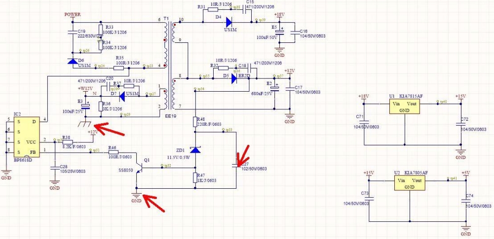 電路板實(shí)物圖是電路設(shè)計(jì)的直觀呈現(xiàn)。從實(shí)物圖中可以看到,該電源方案的電路板布局緊湊合理,元件排列整齊,布線清晰。主控芯片 BPA8618D 安裝在電路板的正面,周圍分布著與其相關(guān)的電阻、電容等元件,便于信號(hào)傳輸和調(diào)試。變壓器 T1 位于電路板的中心位置,占據(jù)了較大的空間,其多繞組結(jié)構(gòu)通過不同的引腳與電路連接,實(shí)現(xiàn)了高效的能量轉(zhuǎn)換。輸出端的接口設(shè)計(jì)在電路板的邊緣,便于與外部設(shè)備連接。整個(gè)電路板采用了雙面板設(shè)計(jì),通過合理的布線和元件布局,有效減少了電磁干擾,提高了電路的穩(wěn)定性和可靠性。