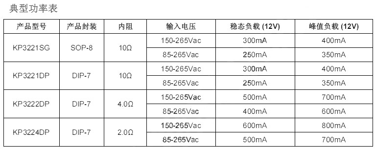 此外,KP322X 系列還具備完備的保護(hù)功能,包括過載保護(hù)、逐周期電流限制、輸出過壓保護(hù)、VDD 過壓欠壓保護(hù)等,確保了系統(tǒng)的穩(wěn)定性和可靠性。