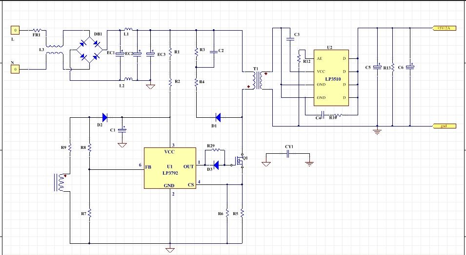 LP3792通過(guò)采樣輔助繞組平臺(tái)電壓,分壓后與內(nèi)部基準(zhǔn)比較形成閉環(huán)后,來(lái)恒定輸出電壓Vo。