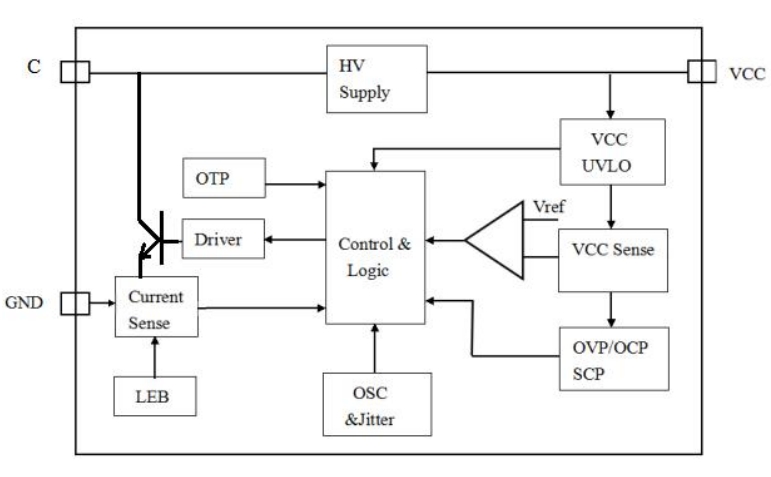 PL3383T內(nèi)部集成了高壓功率管、高壓啟動電路以及多種保護(hù)功能電路。這種高集成度設(shè)計不僅減少了外部元件的數(shù)量,降低了電路的復(fù)雜性和成本,還提高了系統(tǒng)的可靠性和穩(wěn)定性。