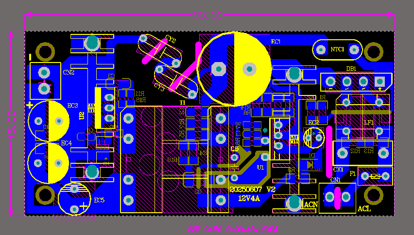 布局設計:電源管理IC位于PCB板的中心位置,以最短的路徑連接到關鍵的外圍元件,如變壓器和輸出電容。這種布局有助于減少功率損耗和提高效率。