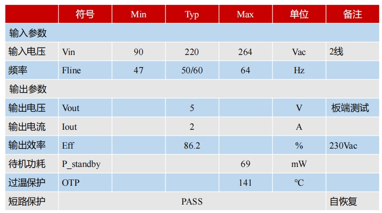 在不同輸入電壓下,S7134B芯片的待機(jī)功耗均低于75mW,滿足六級(jí)能效的待機(jī)功耗要求。具體數(shù)據(jù)如下表所示: