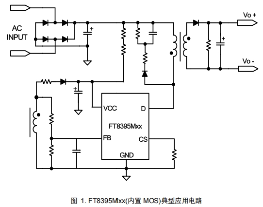 FT8395MBB和FT8395MDB的典型應(yīng)用電路如圖1所示,電路結(jié)構(gòu)簡潔,外圍元件少,便于設(shè)計(jì)和生產(chǎn)。