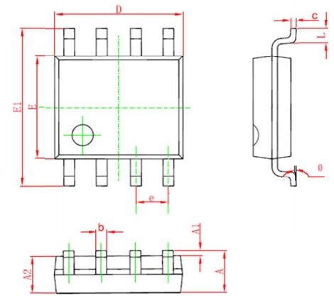 FT8395MBB和FT8395MDB在90~264Vac輸入電壓范圍內(nèi),典型功率可達(dá)18W,適用于多種功率要求的適配器電源。芯片采用SOP8封裝,封裝外形尺寸小巧,便于在緊湊的電源適配器內(nèi)部進(jìn)行安裝和散熱設(shè)計(jì)。封裝尺寸如下: