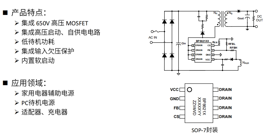 BP86216P 是由晶豐明源(BrightPower Semiconductor)推出的一款高性能電源管理芯片,專為中小功率電源適配器設(shè)計。它集成了 650V MOSFET,并采用先進(jìn)的控制技術(shù),能夠?qū)崿F(xiàn)高效率、低待機(jī)功耗和優(yōu)異的動態(tài)響應(yīng)。