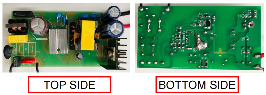 從實(shí)物圖可以看出,BP86216P 的電路板設(shè)計簡潔明了。所有元件均采用貼片工藝,確保了生產(chǎn)的高效性和一致性。變壓器和電解電容的體積適中,能夠適應(yīng)大多數(shù)小型電源適配器的外殼。