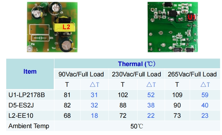 264VAC/50Hz:效率為63.85%,損耗為48.0mW。