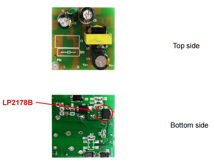 以下是LP2178B電源模塊的電路板實物圖,展示了其緊湊的布局和簡潔的設計: