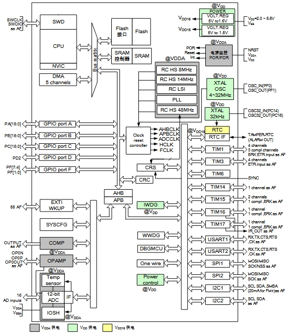 電源管理模塊:內(nèi)置ADC用于電池電壓檢測,實現(xiàn)低電壓保護和電量管理。